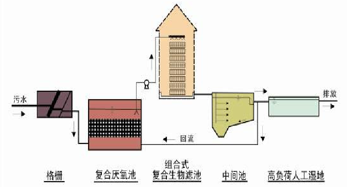 復合厭氧一交大濾池一人工濕地聯合工藝