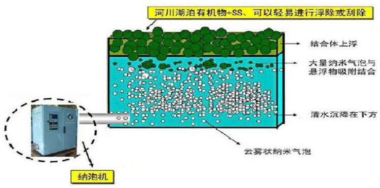 3, nanobubble with negative charge will make solid solubility and chemical substances flocculate and go up;