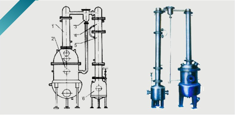 1、濃縮罐 2、冷凝器 3、汽液分離器 4、第二冷凝器 5、冷卻器 6、受液桶